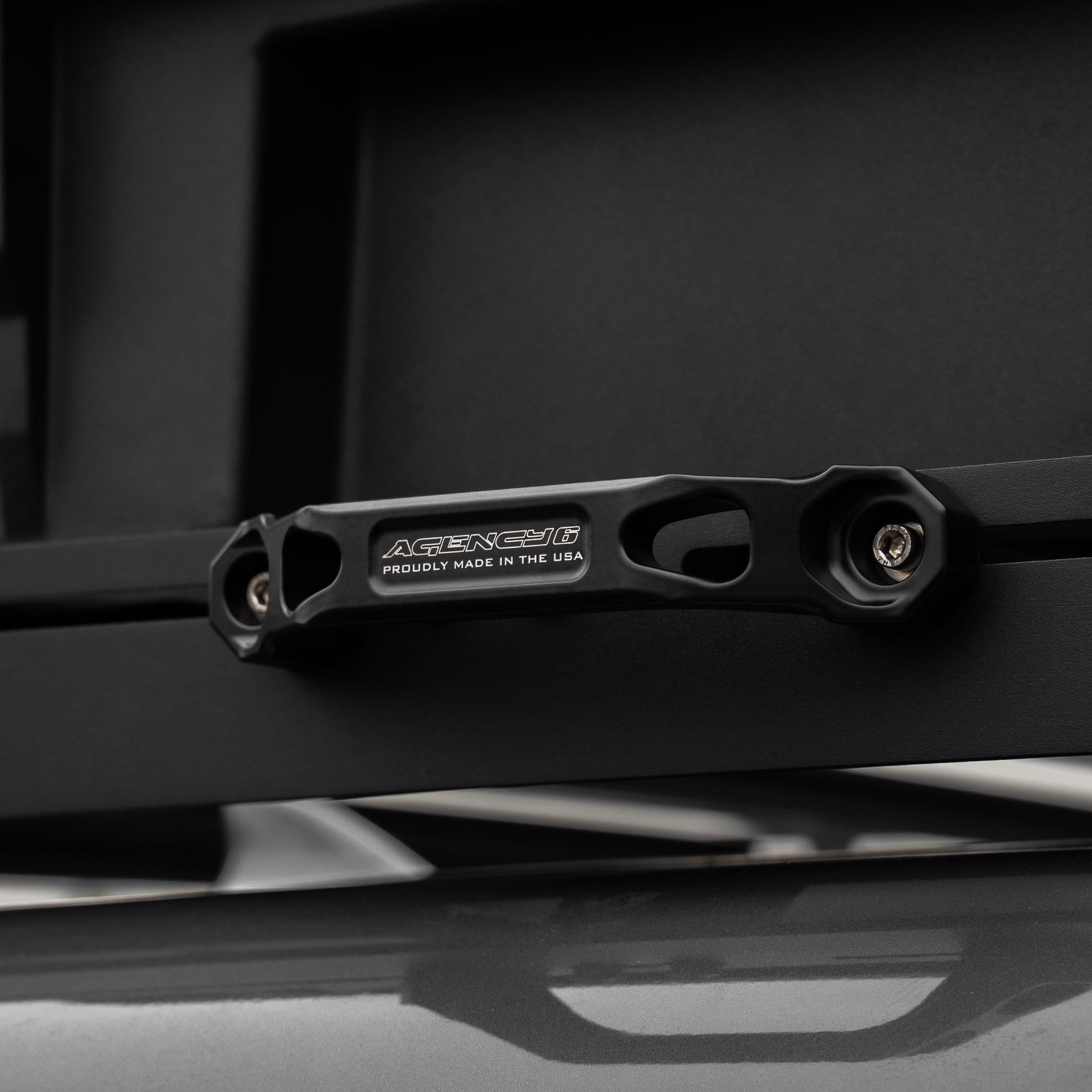 Agency 6 billet grab handles mount easily to a variety of places to make accessing your roof rack or getting in and out less treacherous. Billet aluminum will last a lifetime and the durable powdercoat can bake in the sun or chill in the snow without discoloring.
