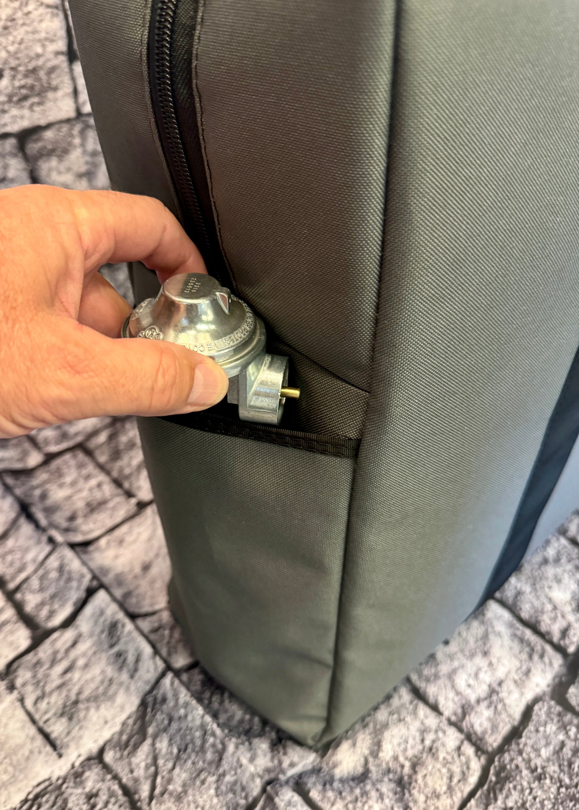 - Organized Storage: Two end pockets offer additional storage. One pocket is specifically designed to hold the threaded brass regulator connector, while the other provides a handy space for miscellaneous utensils.