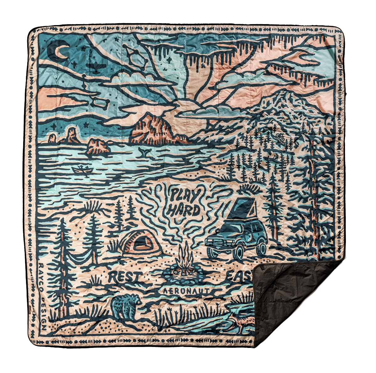 - Integrated zipper pocket to stash phone, keys, headlamp, & transforms into comfy pillow