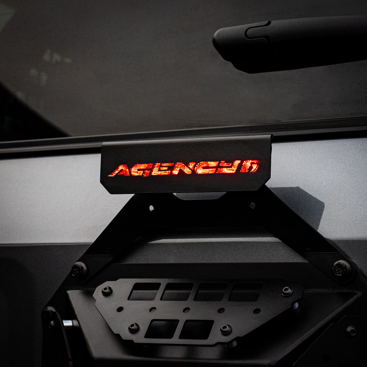 MOLLE pattern cutouts allow for mounting a range of camping and off-road accessories, securely strapped directly to the panel. Easy to install, bolts into factory locations utilizing machined aluminum adapters. The integrated camera and brake light mounts allow you to keep your factory back-up camera and brake light.